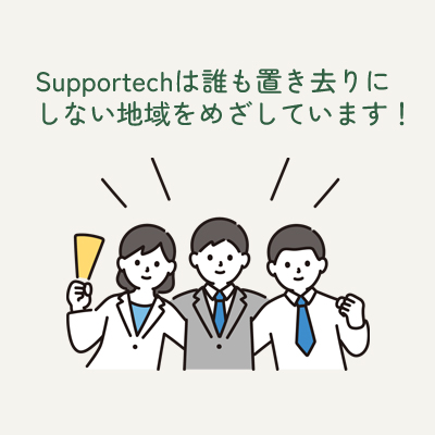 supportechは、 「現状の困っている人に手を差し伸べながら、将来の生活困窮者を一人でも多く減らしたい」という理念の下、誰もが安心して暮らせる社会の実現を目指しています。